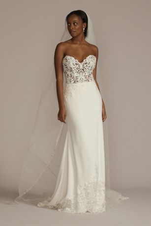 Simple wedding dresses are perfect for the minimalist bride looking to make a big style. Lace and chiffon beach wedding dress with illusion bodice. Are you thinking about selling your wedding dress? For the bride who seeks out simple designs with an unexpected twist, you'll love gowns that boast subtle and shimmering beading, romantic lace .